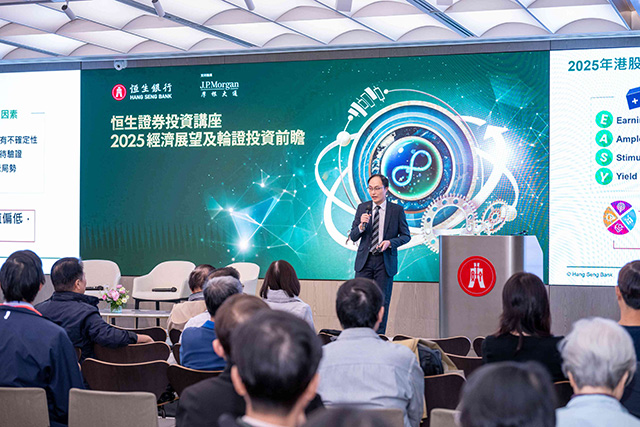 This animation is produced for the Hang Seng Bank Seminar, serving as a visual backdrop to complement the seminar content. The animation should align with the themes of investment and economic outlook, creating a professional and inspiring atmosphere while ensuring that the visuals do not distract the audience from the speaker’s presentation.